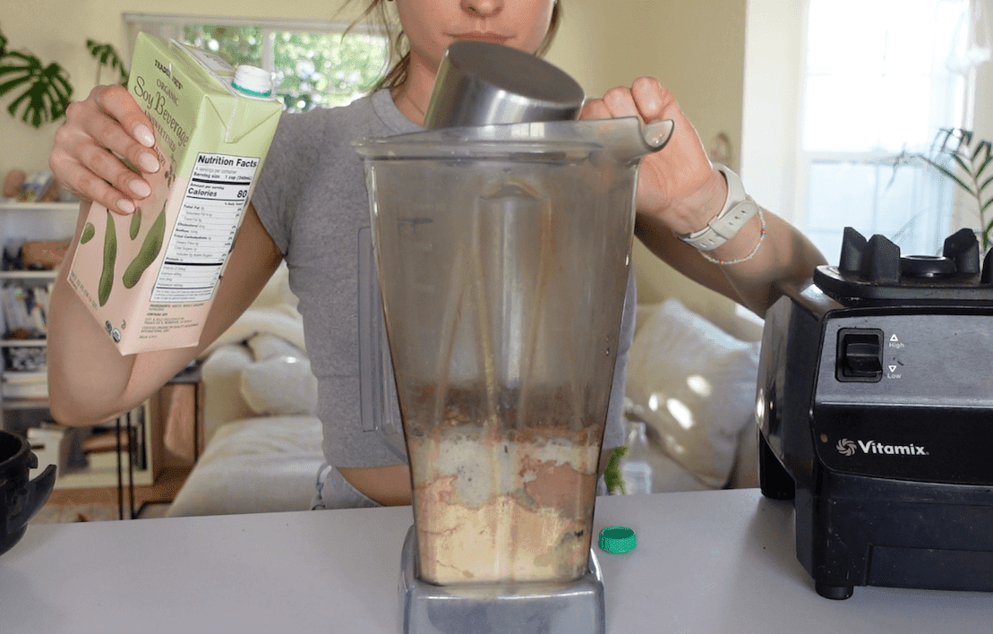 - 2.5 cups non dairy milk unsweetened soy is my fav, it adds extra protein