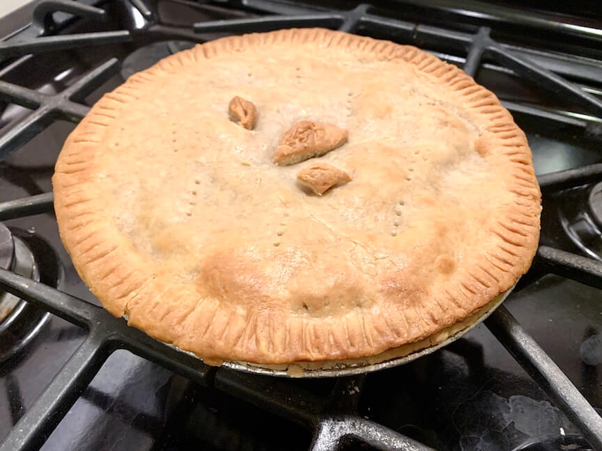 - If using frozen pie crusts take them out of the freezer 3-4 hours before making this recipe and allow to thaw. I use one rolled up pie crust and one that comes already in the pie pan. You can find vegan pie crusts at most grocery stores but I got mine at whole foods, just look for no lard or butter. Make sure they are completely de frosted when you use them or else they will crack.