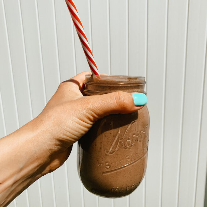 To make this healthy chocolate shake even sweeter you can add more frozen bananas or dates. Cut back on the amount of beans to just 1/2 cup or less if you don’t want to taste the beany texture. You can use any type of plant milk you prefer. I like unsweetened soy because it adds additional protein to the drink. Or just use water.
