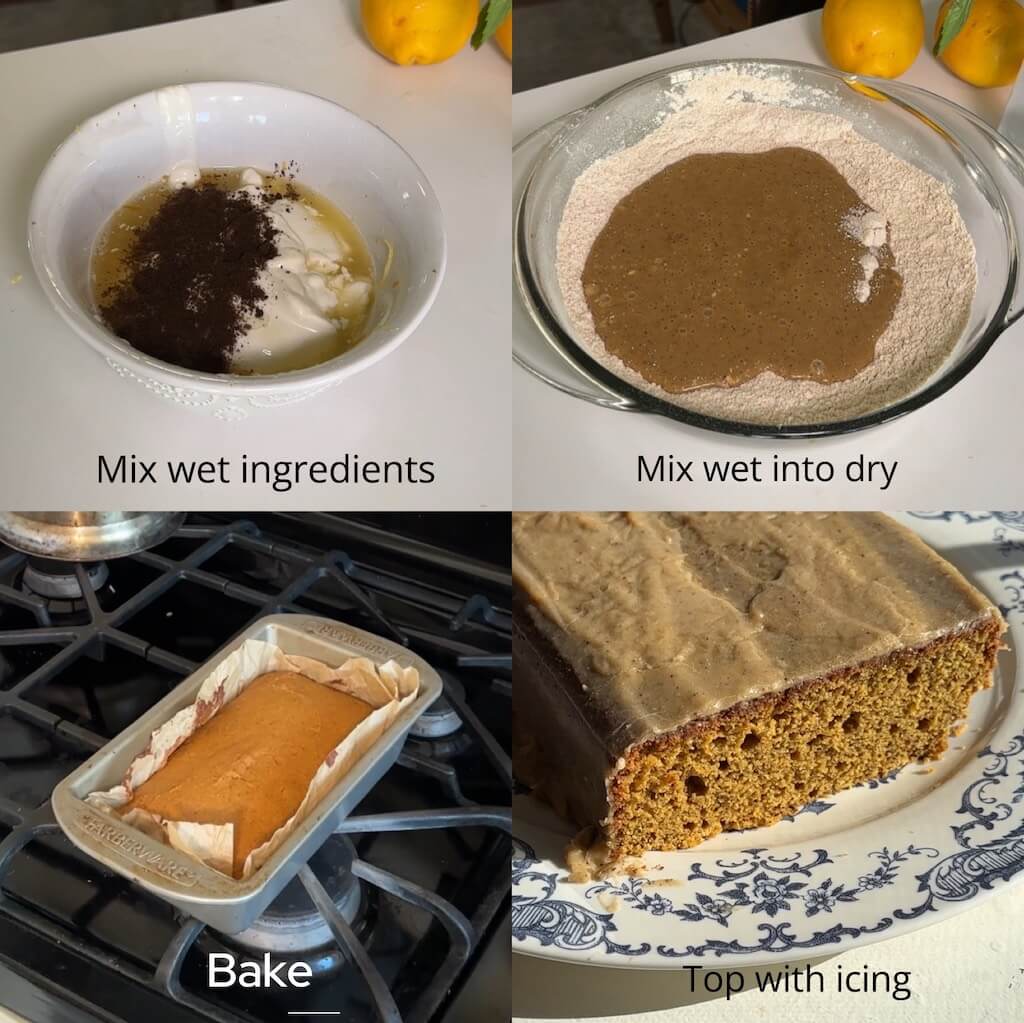 - 5. Blend up the ingredients for the icing in a high powdered blender. Spread icing on the loaf once it has cooled down.
