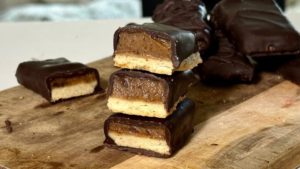 HEALTHY TWIX CANDY BARS with NO refined sugar, white flour or oil! Treat yourself with this yummy homemade chocolate candy recipe you can feel good about eating!