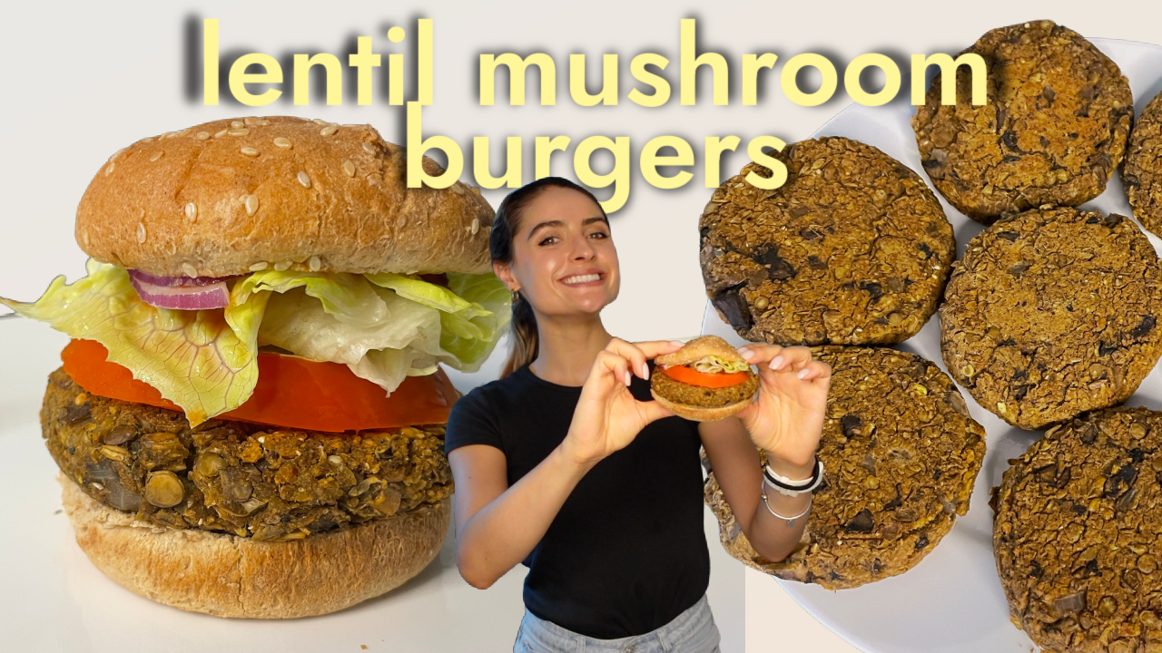 Loaded mushroom lentil burgers made with all whole plant food ingredients! This recipe has been my go-to veggie burger this past summer! Even though summer is ending I still love prepping a batch of these mushroom burgers and freezing them so we have an easy meal to heat up in a pinch. These burger patties are super healthy made with all whole food, unprocessed ingredients. They are lower in sodium than any veggie burger I’ve bought from a store. Each burger has nearly 12 grams of protein which is also pretty high for a whole foods plant based veggie burger! Here’s how to make them: