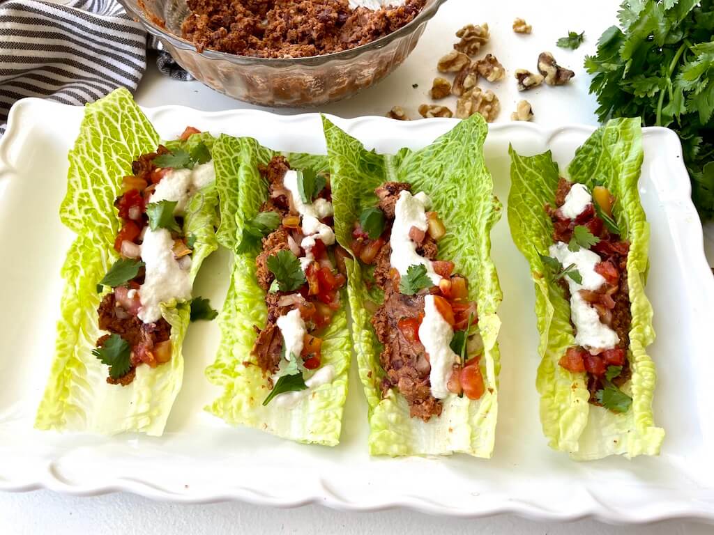 Walnut Bean Chorizo Lettuce Leaf Tacos