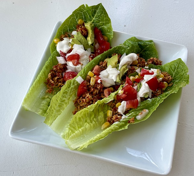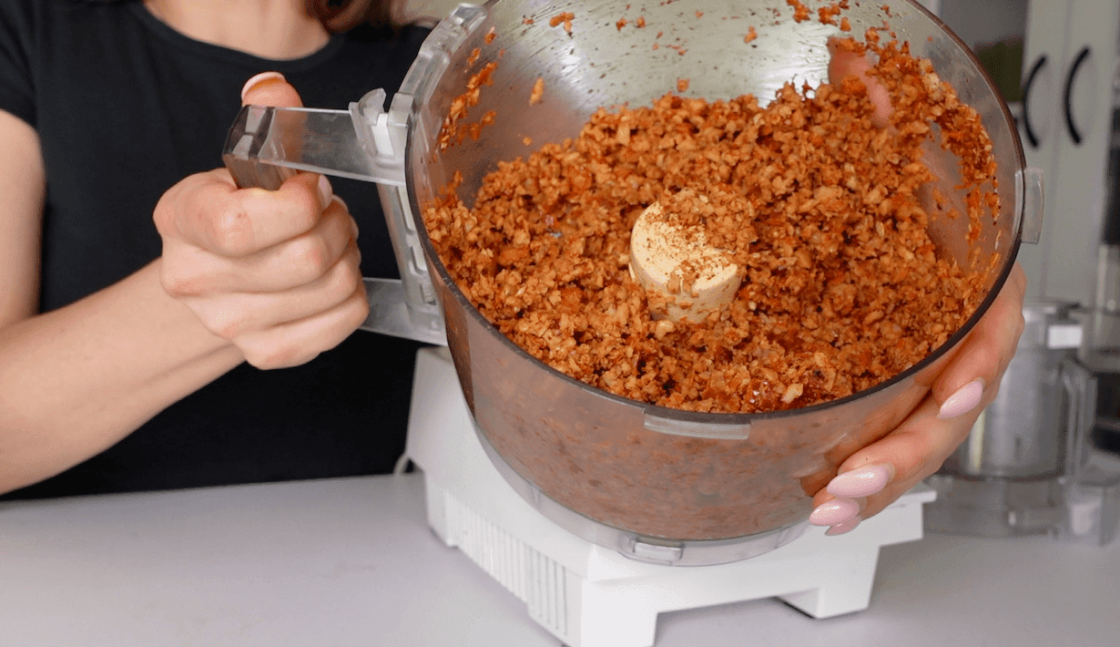 - 2. Add all ingredients to a food processor and pulse together til you get a crumbly texture. Taste and and adjust the seasonings/ salt to your taste. Serve as a salad topping or as a taco or lettuce cup filling.